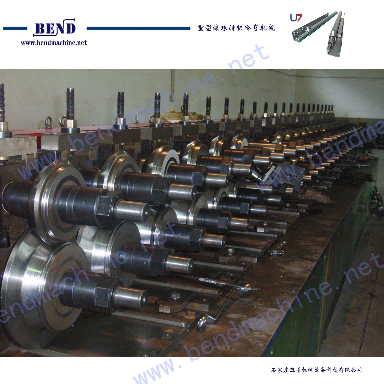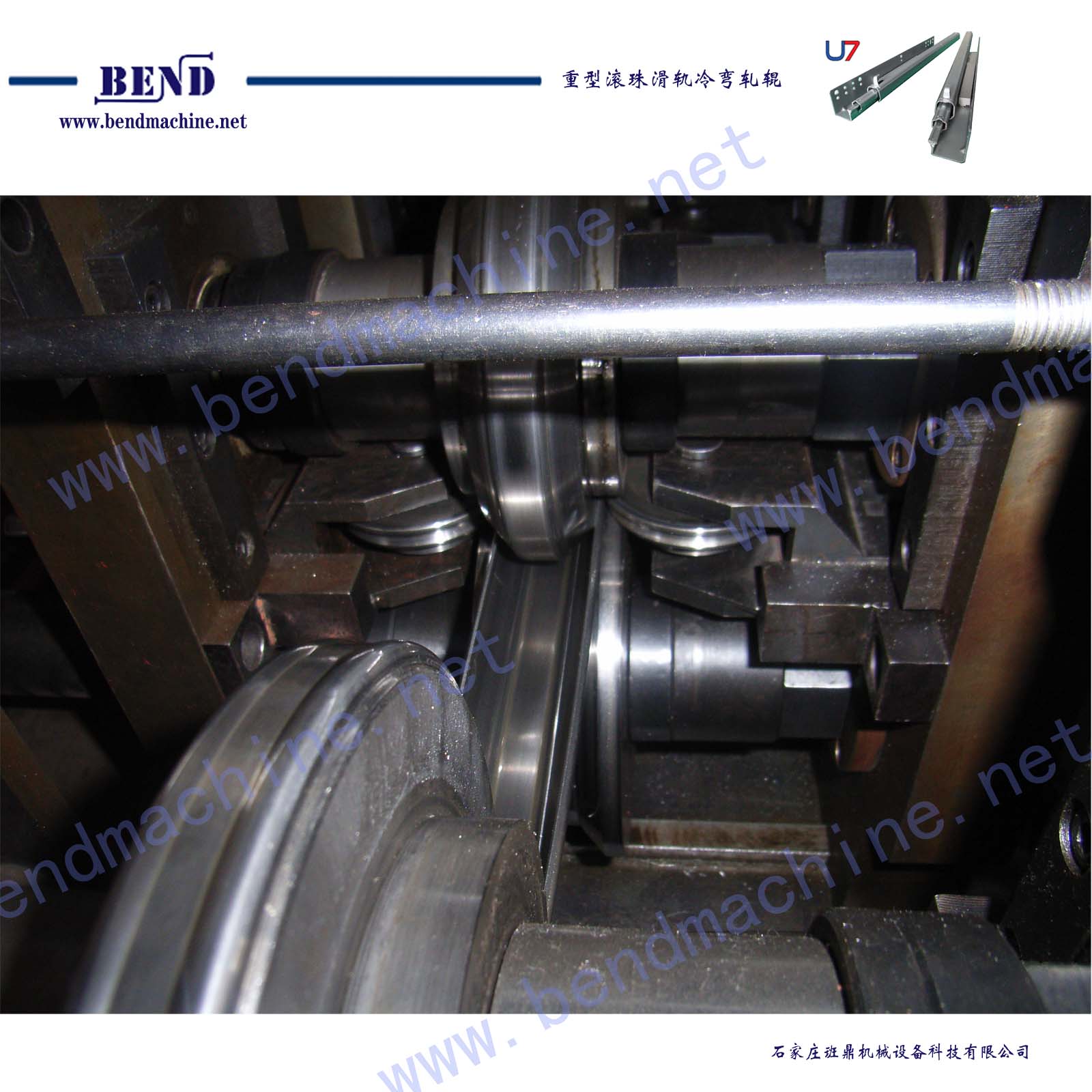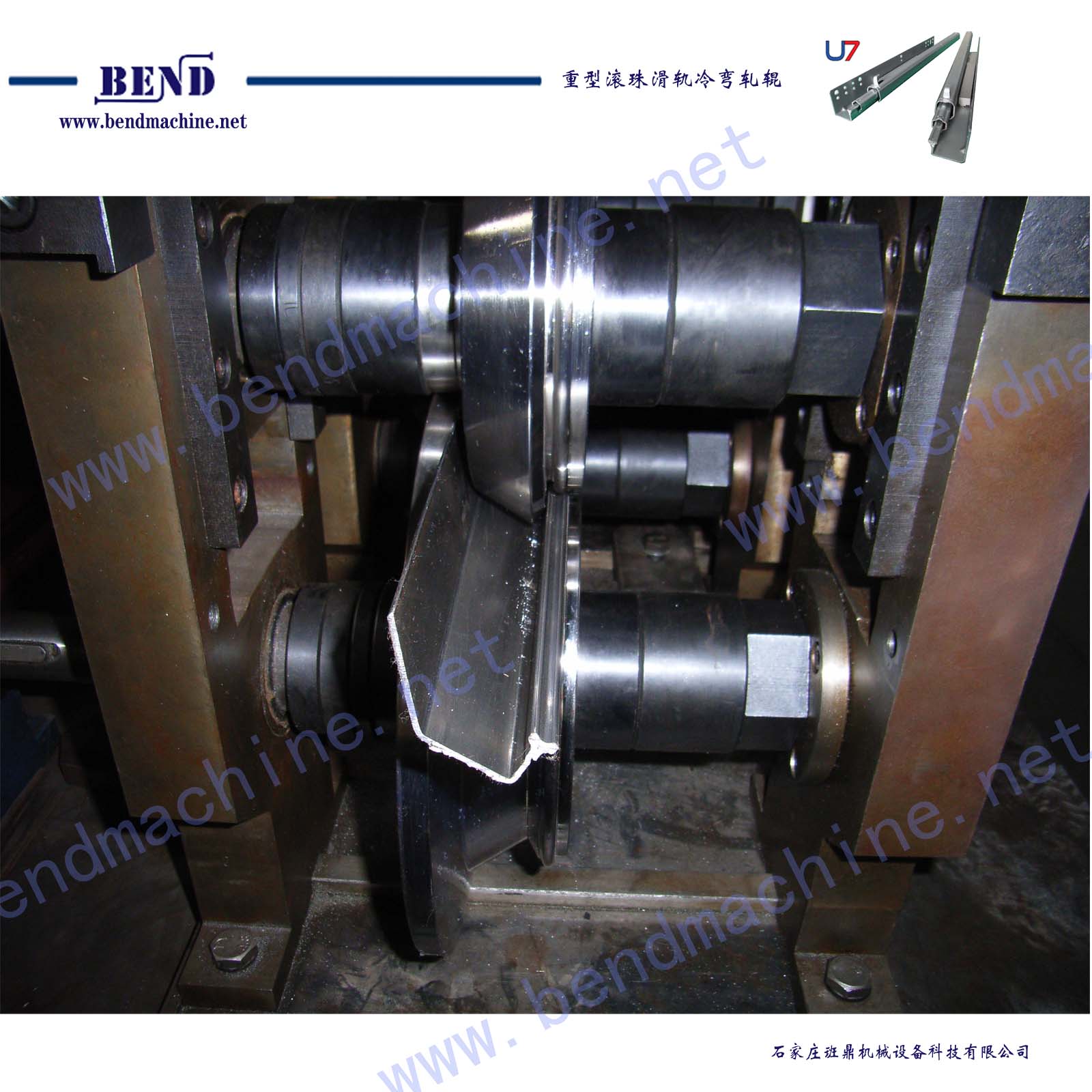 U7重型滚珠滑轨包括内轨、中轨、外轨型材,由三套冷弯轧辊完成三种型材生产。通过冷弯模具实现金属板料钣金变形、塑性变形、轨道面硬化、精整尺寸精度,实现冷弯产品最终要求。
